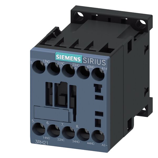 vazební pomocný stykač, 3 NO + 1 NC, 24 V DC, 0,7-1,25* US, šroubová svorka, konstrukční velikost S00, určeno pro PLC výstupy, nelze rozšířit o pomocné spínače spínače vazební pomocný stykač SIRIUS 3RH2 pro zapnutí řídicích signálů v okruhu řídicího proudu s možností přímého připojení k elektronickým rozvodům. Pomocné vazební stykače SIRIUS 3RH2 mají označení přípojek odpovídající normám a spolehlivý a časově úsporný systém připojení. Díky zmnožení výstupů lze současně zapojit více pomocných proudových okruhů. Kontakty jsou s nuceným vedením pro bezpečnostní aplikace k dostání též jako varianty SUVA. Pomocné vazební stykače jsou klimaticky odolné, mají vysokou spolehlivost kontaktů a díky příslušným schválením (např. IEC a UL/CSA) jsou vhodné pro globální použití. Jsou k dostání v ovládání AC nebo DC a k dispozici se šroubovou nebo pružinovou svorkou. Rozsáhlé příslušenství stykačů 3RT2 pro konstrukční velikosti S00 až S3 lze použít rovněž pro pomocné vazební stykače 3RH2. Pomocné vazební stykače 3RH2 nahrazují osvědčenou typovou řadu 3RH1. Jednoduchá, efektivní, vždy aktuální - systémová stavebnice SIRIUS.
