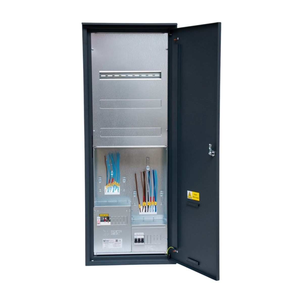 Rozvaděč elektroměrový EMR 2 + 54N barva antracit, bez hlavního jističe + 54modulový podružný nahoře univerzální 2025 pro distribuci ČEZ + EG.D, vypínač 63 A.