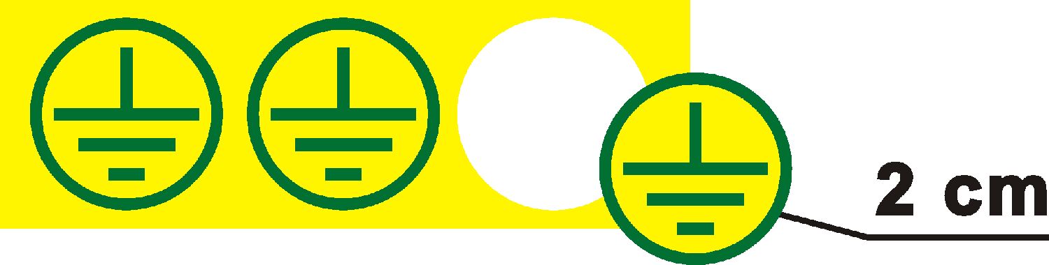 (2 cm) v barevné kombinaci žlutého podkladu a zeleného tisku. Tento rozměr je jedním z nejuniverzálnějších v elektrotechnice, ideální pro značení zemnicích bodů na středně velkých elektrických zařízeních, svorkovnicích a vnitřních částech rozvaděčů.