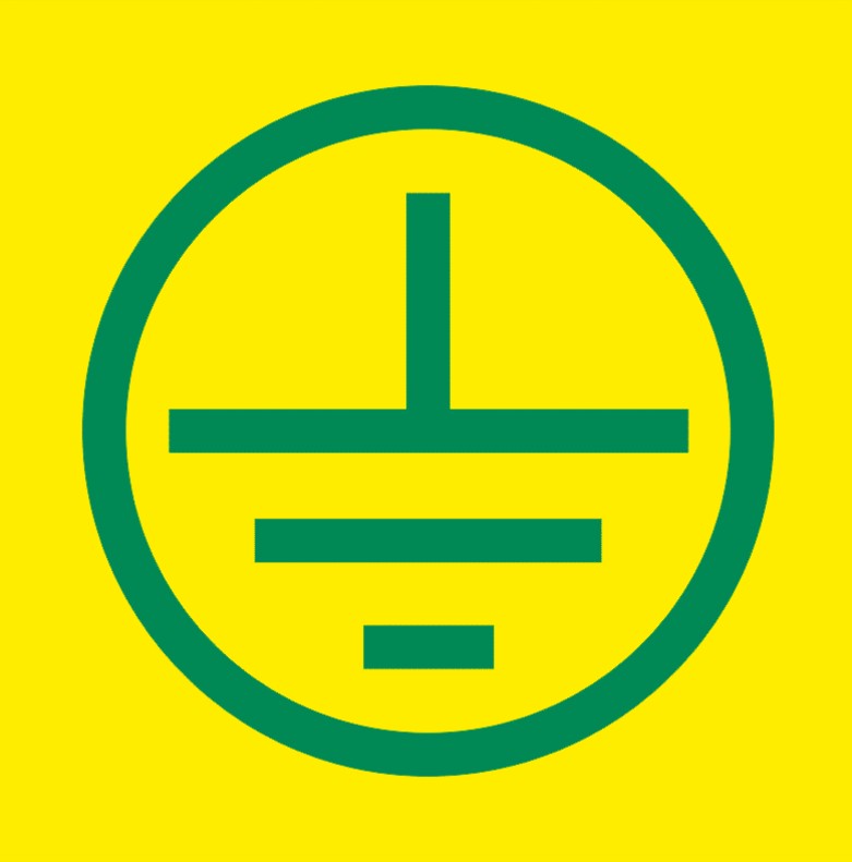 Samolepka DT012G1 5x5cm Znak uzemnění v kruhu, zelený tisk, žlutá f.
