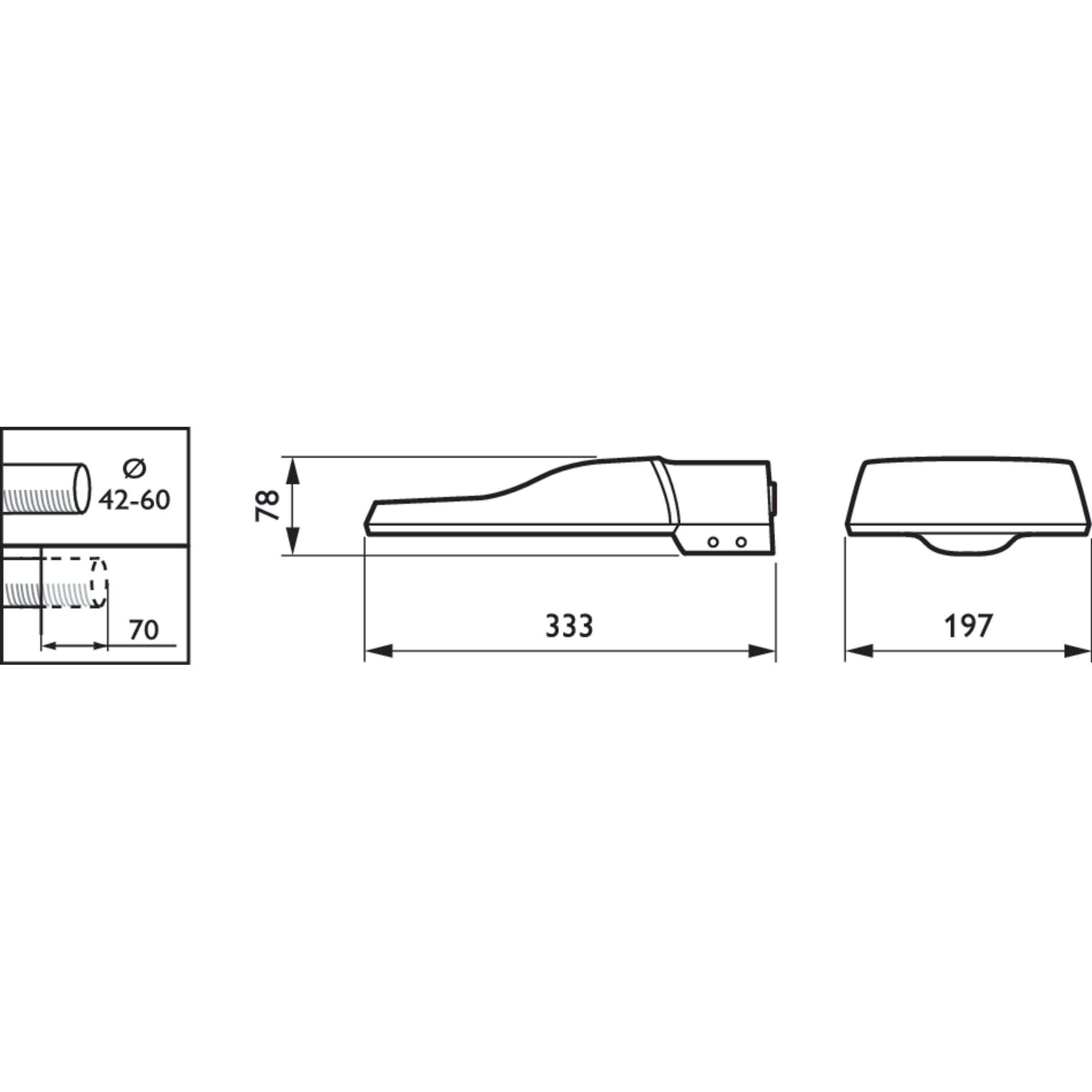 tělo lampy je vyrobeno z tlakově litého hliníku s vnější povrchovou úpravou v lesklém šedém provedení RAL 7035