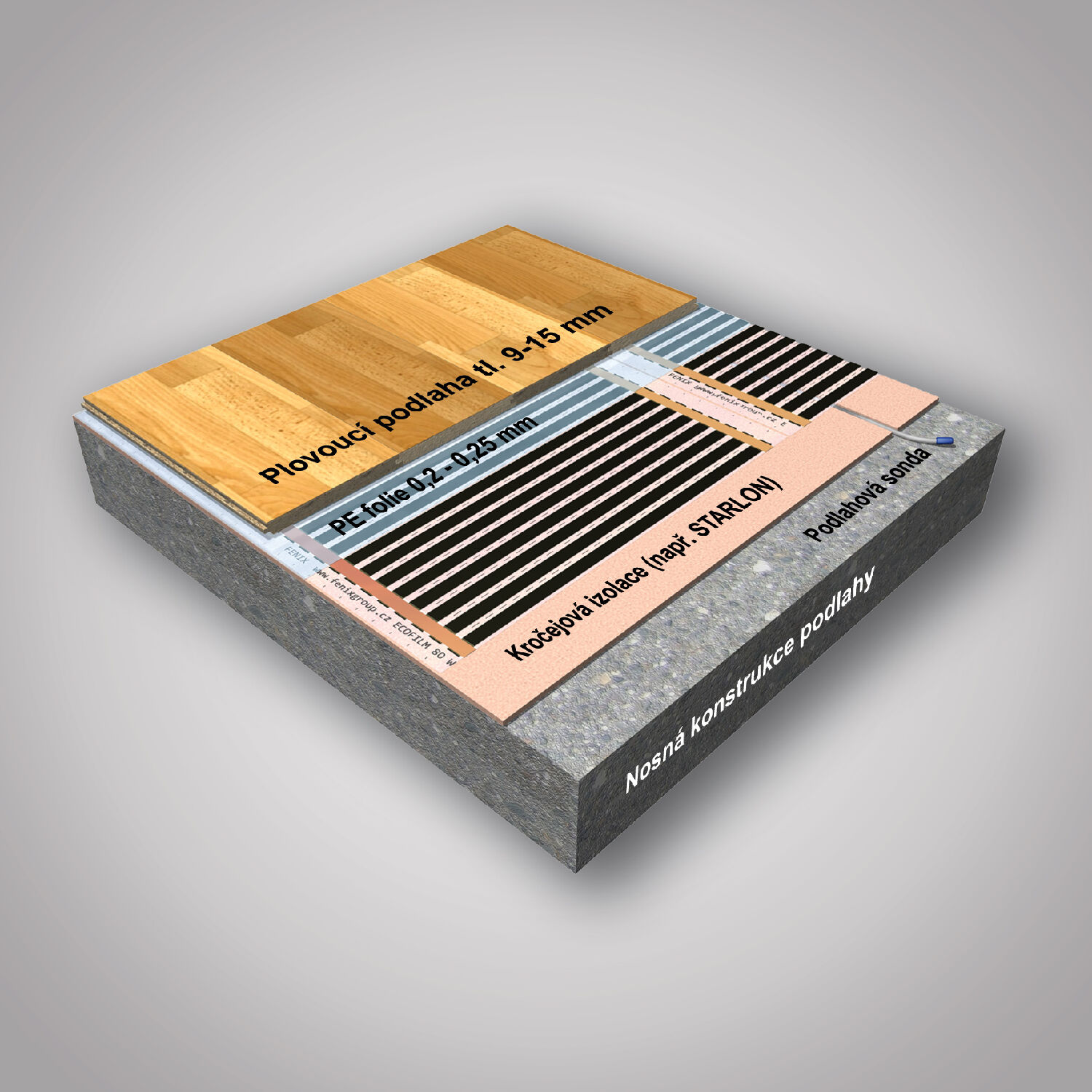 fólie díky své tloušťce (0,4 mm) nezvyšuje výšku podlahy a umisťuje se přímo pod nášlapnou vrstvu - ostatní systémy se umisťují až pod vyrovnávací izolaci